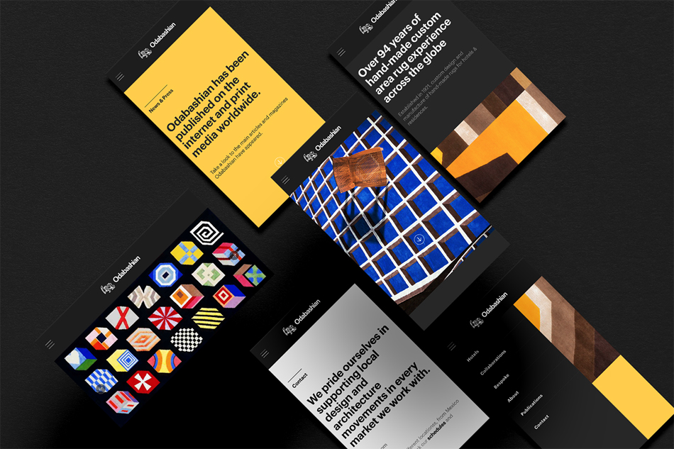 odabashian与世界知名的平面设计公司、建筑师和工业设计师共同开发和设计的手工地毯。因此,我们网页设计了一个基于三个主要原则:定制互动平台,采用图形语言致力于风格如字体设计和基于品牌形象设计的行为系统的最小元素的内容布局。